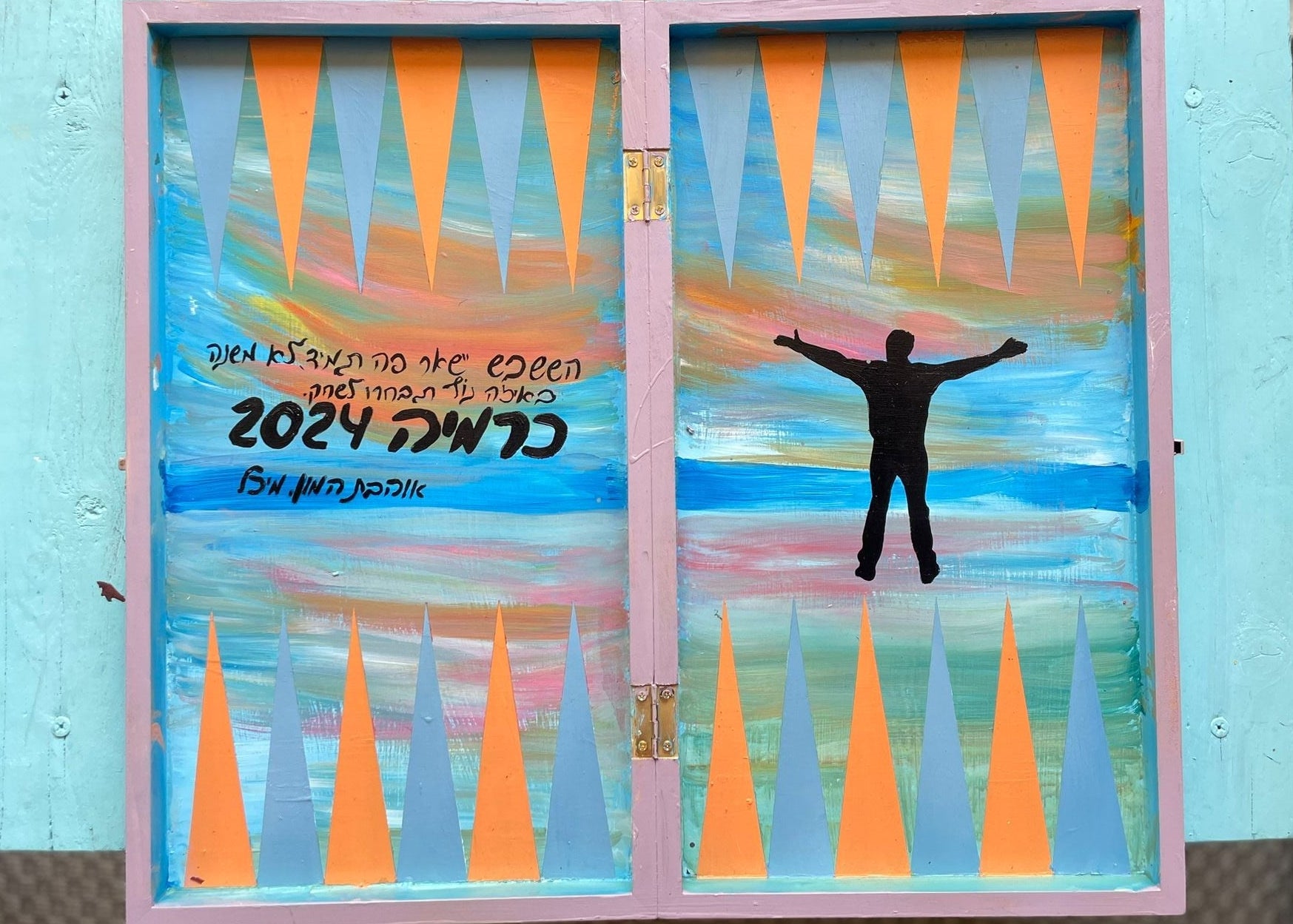 בחרו לשש בש שלכם צבעים לרקע ולמשולשים, כיתוב בעברית/אנגלית. לאחר מכן העלו תמונות בהתאם לתיאור